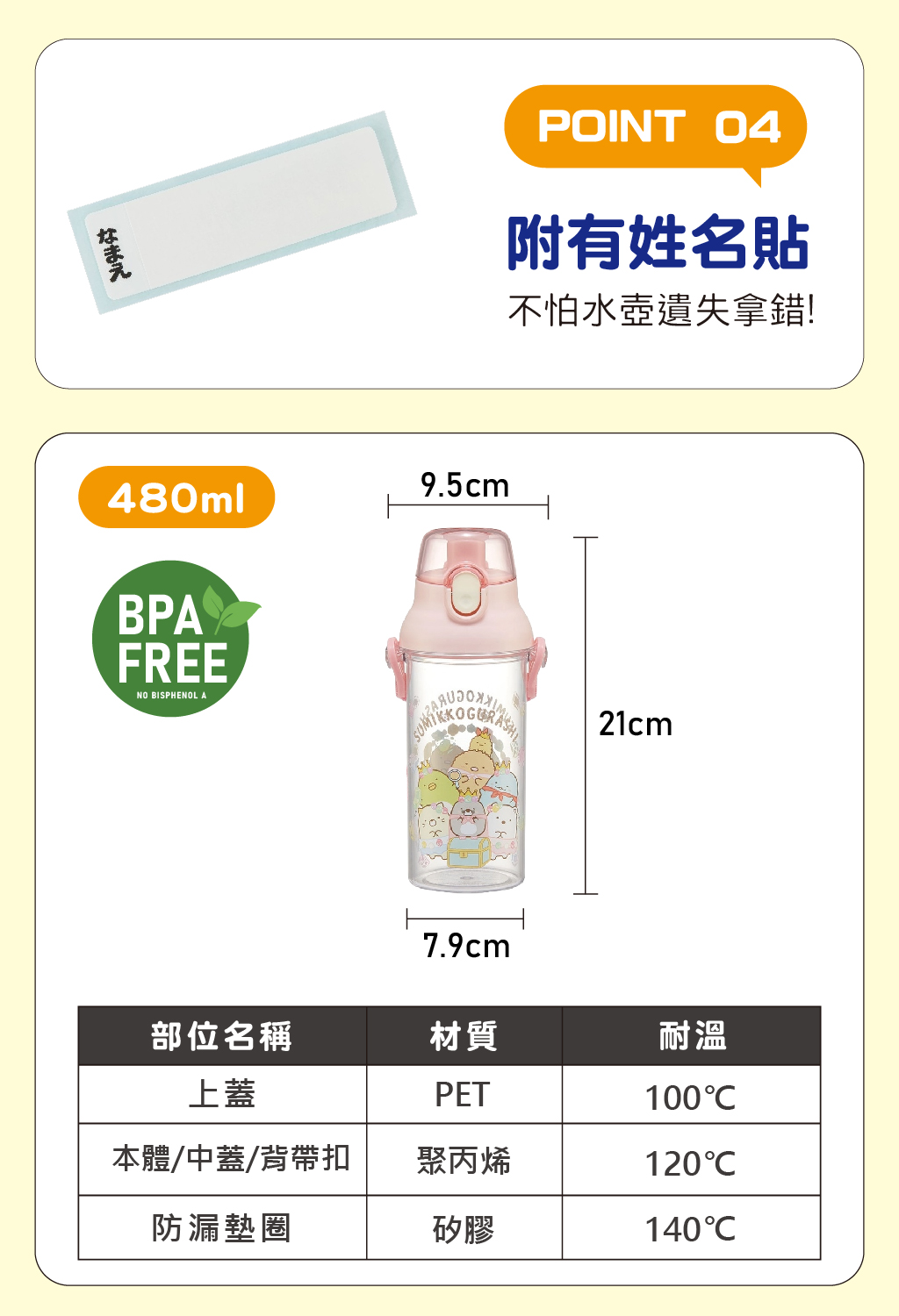 材質:PET/聚丙烯/矽橡膠