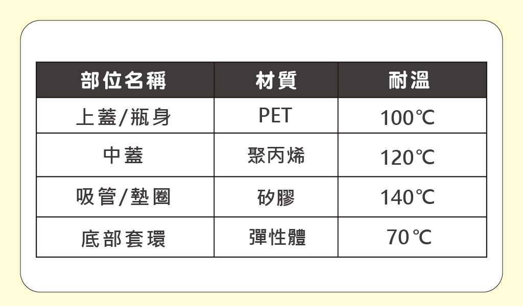 4.底部套環耐熱度僅約70度,如要進行消毒時請務必取下。