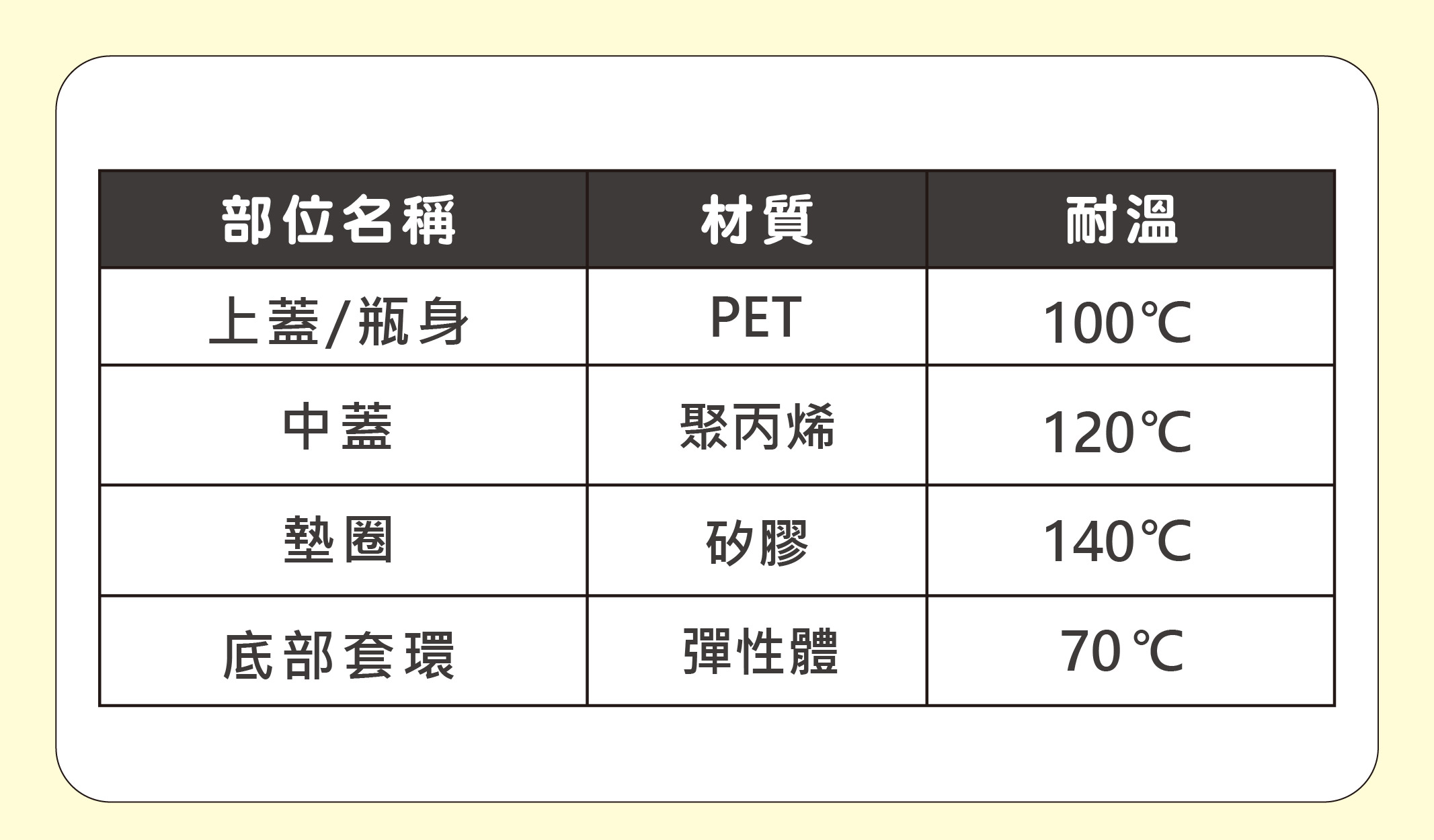 4.底部套環耐熱度僅約70度,如要進行消毒時請務必取下。